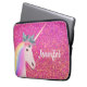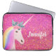 ユニコーン·レインボー·ピンク·グリッター·ファンタジー·ラップトップスリーブ保護にユニコーンのケースを入れて、電子かわいらし機器をスパークル。 背景は明るいピンクと金ゴールドのフェイクグリッターと、頭に花のついた白い一角獣です。書パーソナライズされた字レタリング