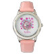 かわいいユニコーン,ピンクのハート&フラワーカスタムネーム 腕時計