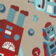 男の子の寝室に最適なこの壁紙を使用して、壁にSFtouchを追加する。赤と青の色合いの可愛いヴィンテージロボットのイラストとコーディネートされた六角ナットが日焼け壁紙にセットされパターン(の模様が)あるている。