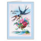 ツバメが飛んでいくと運、くちばしに美しい花のかご。碑文読誕生日願い。