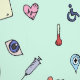 このデザインは、医療業界に関連するシンボルのかわいいドードルパターンを特徴としている。