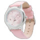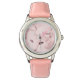 ピンクレザーの時計バンドが猫を上手く引き立てている。