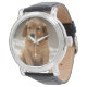 愛らしい座っ与えている子犬の犬の目カメラに。