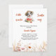 シックな白い背景。可愛飾い子犬と一緒に、ストラックとスイカを着食べた犬。ベージュ、クリーム、ピンクのワイルドフラワー。カスタマイズし、お母さんの名前を追加するパーティー詳細。文字:少し甘い人が道を進んでいる。1枚= 1枚の招待状を印刷したエッジからエッジ