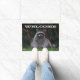 美しい森のラクーンの写真のイメージをカメラのためにポーズを付けた装飾ウェルカムドormat。屋内を使用するか、カバーされた入口領域で使用する。