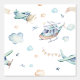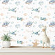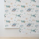 可愛い水彩飛行機ヘリコプター雲男の子壁紙は白い背景に雲と青と茶色の色合いで可愛い水彩飛行機とヘリコプターを備えている。男の子のベッドルーム、子供部屋の装飾、家、オフィス、パーティーの装飾に最適。Evco Studio www.zazzle.com/store/evcostudioによって作成