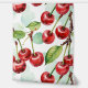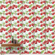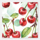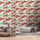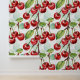 光沢のある赤いさくらんぼ、セージ緑の葉スティックと剥離の壁紙の水色aiイラストレーションパターン。