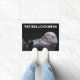 可愛い入浴Sea Otterの写真のイメージを特徴とする装飾的なウェルカムドormat。屋内を使用するか、カバーされた入口領域で使用する。