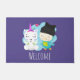 かわいい漫画の仲間 – Happy Unicorn & Bird ドアマット