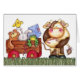言うかわいい牛カード。 おもちゃのワゴンを十分に引っ張っている牛。