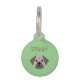 茶色のパグの平らなイラストレーションを持つ可愛い犬のラベル。犬の名前でカスタマイズする。