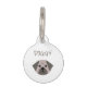 茶色のパグの平らなイラストレーションを持つ可愛い犬のラベル。犬の名前でカスタマイズする。