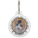 丸い黒い枠に猫の写真を入れ大切、前絵の間にペットの名前を入れ、後ろの情報と一緒に表のフレーズを入れて、可愛いカスタムデザインを作り連絡る。