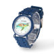 かわいい,男の子,フローラ,ウミガメ,動物の水の色の腕時計。完子供へ全。お子様の名前でカスタマイズする。