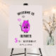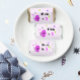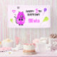 ピンク色の背景に可愛い薄紫猫とハートとバルーン誕生日パーティー