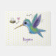 この可愛いデザインは、黄色い水玉模様の背景に蜂の友達と緑と紫の幸せなハミングバードを備えている。すべてハッピーマンガイラストレーションスタイル!