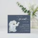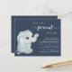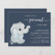 男の赤ちゃん象の白フレンドリータイポグラフィとスクリプトとパステルブルーの水色で「甘い小さなピーナッツが彼の道にある」を特徴とかわいい予算の男の赤ちゃんシャワー招待シンプル。