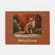 かわいい赤いキツネ太陽の下に座って ドアマット
