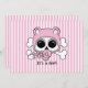 ピンクの帽子とおしゃぶりをしたかわいい赤ちゃんの女の子のドクロと骨