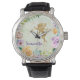 かわいい金ゴールドグリッター妖精と紫色の野生の花 腕時計