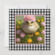 四角いかわいらしイースターカードは、黒と白のイチョウのチェックの背景を持つピンクと黄色の花の間で絵画、ベビーのシックなデジタルアートの機能を備え縁どる。背面で「ハッピーイースター」の挨拶をパーソナライズ