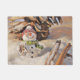 かわいい雪だるまの雪の絵画水色 ドアマット