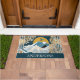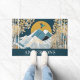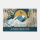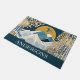 かわいい芸術的冬のハミングバードシーンと美しい名前をカスタムするドアマット。アールヌーボースタイル装飾屋外マット。おカスタマイズ客様の家族の名前またはウェルカムメッセージの下のバナー。