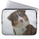 カメラを右に見て可愛い犬!犬は少し雪が降っている。カメラは彼の注意を引いている。