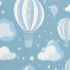 かわいい青い白のホットエアバルーン、星&雲の壁紙