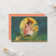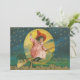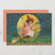 満月が出て可愛い小さな女の子の魔女飛んでいる!ヴィンテージハロウィンプリントは黒猫と魔女の姿の小さな女の子を描いた飛んでいるハロウィンのまわりにの。星と満月は彼女の機知に満ちた時間の飛行を照らすために存在している。