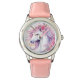 ピンクの花と可愛い水色のユニコーン、フローラ装飾。