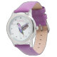 かわいい,女の子,カラフルハミングバードバード,モダン,フローラ,野生動物,動物の水の色の紫色の腕時計。完ガーリー全子供へ。ハンド絵を描イラストレーションバイMonika Howarth.お子様の名前でカスタマイズする。