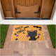 かわいい黒猫とこうもりのオレンジと白の星 ドアマット