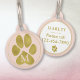 かわいい 偽のゴールドの肉球プリント ブラッシュピンク モノグラム ペット ネームタグ