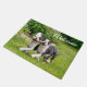 2人の若い幸せなボストン·テリアの子犬で、白い紋章が付いランニングていて、が並んでいて、棒が一本で、多くの運おもしろいを持っています。ボストン·テリアー犬種はボストン·ブルや「アメリカン·紳士」とも呼ばれますカトおもしろいオ·メンデンの動物写真デザイン。この写真印刷ドアマットウェルカムは、愛犬家向けのギフトアイディアです。 名前または文字でカスタマイズ