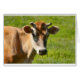 これは彼女の食糧で食べ、カメラを凝視しているジャージーかわいらしく小さい茶色および白い牛です。