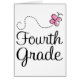 美しいピンクの蝶ロゴに原稿のスタイルの先生のための4年生の学校のスローガンがあります。 素晴らしい認識のギフトのアイディア。