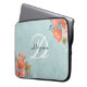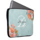 かわいらしティール(緑がかった色)ピンクフローラモノグラム ラップトップスリーブ