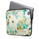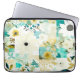 かわいらしフォークアートホワイトとターコイズの花 ラップトップスリーブ