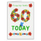 A、かわいらしフローラ60th誕生日カードの継母。数字は花で構成され、文字の上に青い蝶が止まっている。このデザインはJudy Adamsonの手色彩の鮮やか型紙コラージュから提供され、フロントカードとしてもカスタム利用できる。必要に応じて内側の文字もしを編集できる。