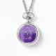 自カスタマイズ分のネックレスの時計を作る手書きスタイルスクリプト。名前の後ろにモノグラムイニシャルを追加して、独自の名イニシャルの組み合わせを作成する。グラムガーリーアメジストフェイクグリッターと紫色の金属ブラシ付き金属箔デジタルアートは、彼女の贈り物に写真のようにプリント。