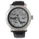こうもりズ飛んでいるメンズブラックレザーストラップウォッチ