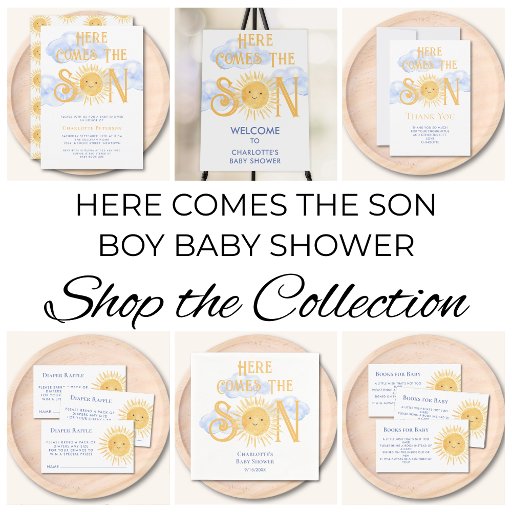 ここに太陽の息子、太陽の雲のベイビーシャワーがやってくる 招待状