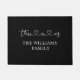 「こちら」ハート、ブラック ドアマット
