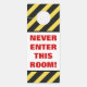 このデザインには、赤い文字の「この部屋に入らない!」というメッセージはっきりしたと、黒と黄色の警告メッセージが含まれてストライプいる。