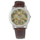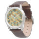 このメンズウォッチは半世紀のデザインを持モダンち、日焼け、オフホワイト、ブラウン、オレンジ、ターコイズ、ブルー、グリーンのレコードのアダプターが一面に重なり合っている。