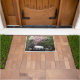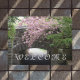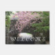 装飾的で歓迎された装飾は、ピンクの写真のイメージを特徴とするさくらんぼの花は、石造りの歩道と歩道橋の上にドレープ。素敵なフローラデザイン!屋内を使用するか、カバーされた入口領域で使用する。フォーマットのサイズを選択する。