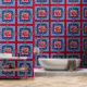 さくらんぼデニムアンドジンガムチェックコテージキルト 壁紙