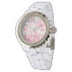 ピンクかわいらしの背景に白いさくらんぼの花がきらめく咲く。こカスタマイズこの高級ウォッチは君の名を冠したもの。