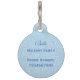 かわいいピンクのさくらんぼと青いグリッターのペットのラベルが、表側にペットの名前、裏側に名前と住所が書かれている。